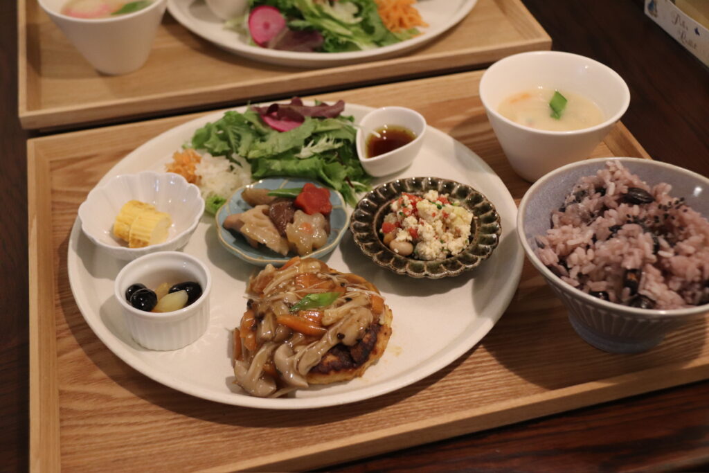 イチオシのhanaオリジナルの月替わりメニューです。副菜は季節の野菜と、糀調味料をふんだんに使用しました。身体にも腸にもやさしいお食事を。